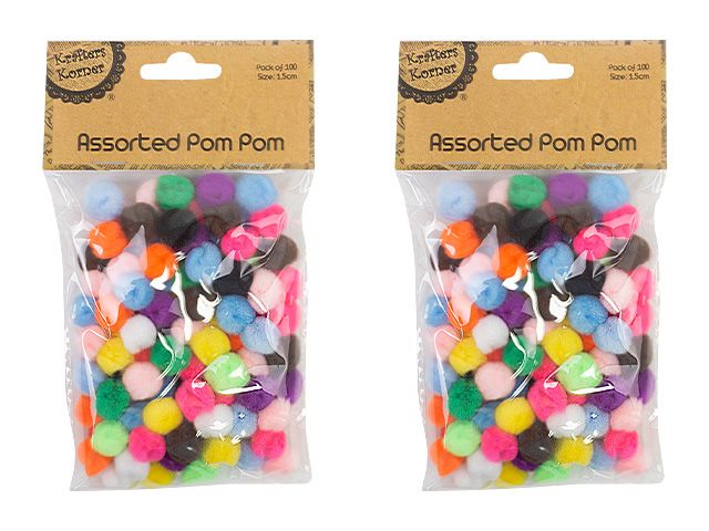 Pom Poms 15mm Asst Cols. Pk100 KK